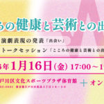 こころの健康と芸術との出会い (12/22/2025) - 演劇表現の発表「出会い」 トークセッション「こころの健康と芸術との出会い」 日時 2026年1月16日(金) 17:00~19:00 会場 江戸川区文化スポーツ… ...
