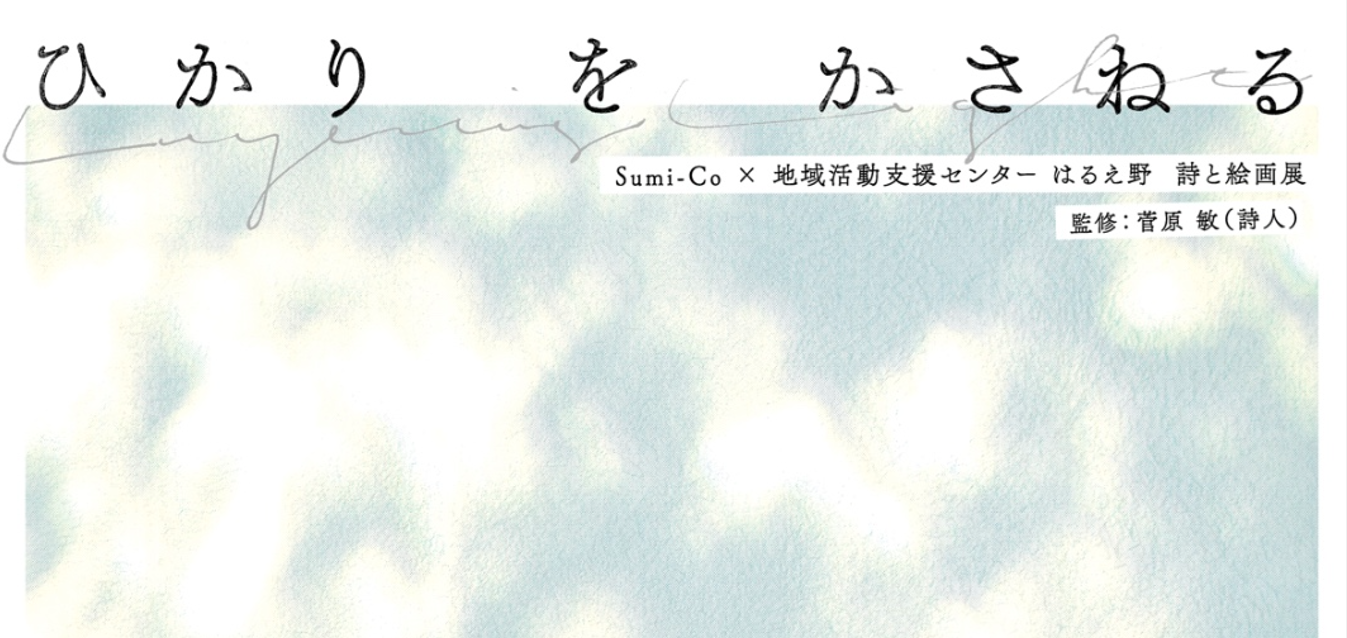 展覧会のお知らせ 「ひかりをかさねる」 (1/14/2026) - Sumi~Co × 地域活動支援センターはるえ野 詩と絵画展 監修:菅原敏(詩人) 2026年1月13日(火)〜2月25日(水) 会場:あーとコモンズ Sumi… ...