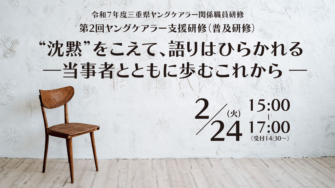 “沈黙”をこえて、語りはひらかれる ―当事者とともに歩むこれから ― (1/19/2026) - 令和7年度 三重県ヤングケアラー関係職員研修 第2回 ヤングケアラー支援研修(普及研修) ヤングケアラーとして日常的にケアを担ってきた子どもたちは、自分の気持ち… ...